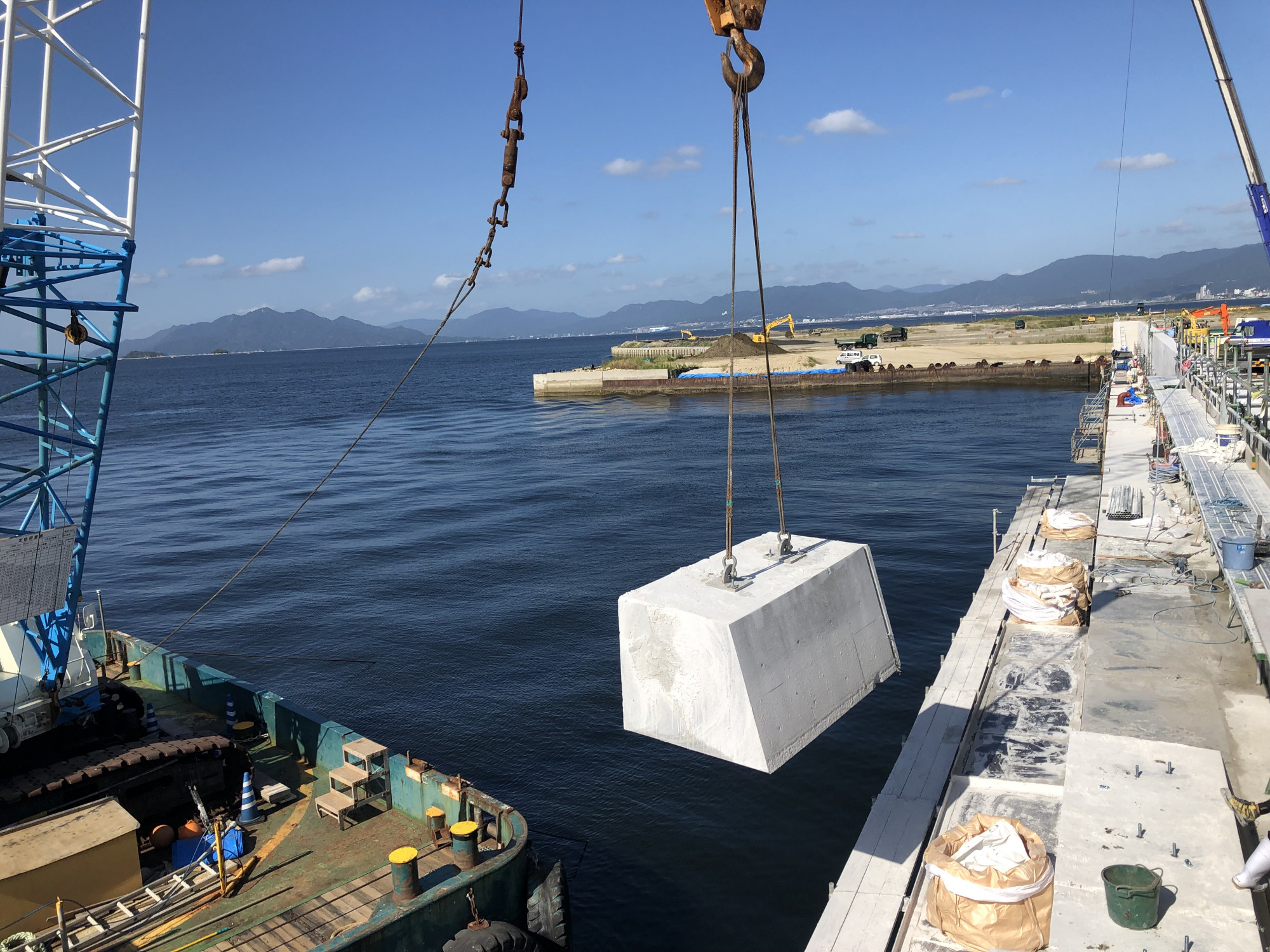 2019年8月〜9月 広島市 既設護岸、延長 約110mを ワイヤーソー工法にて切断撤去しました。